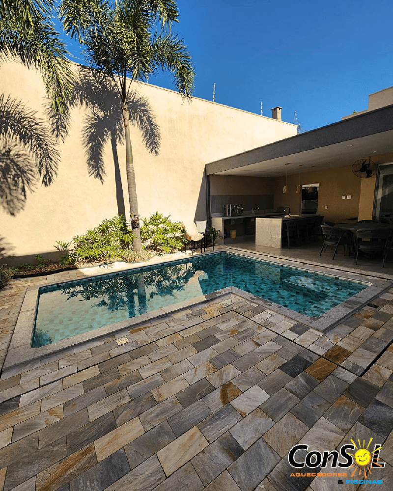 Se você está buscando uma piscina com o mellhor custo benefício, a de vinil é ideal para você. Esse tipo de piscina pode ser feita em qualquer formato ou tamanho, além de diversas opções de estampas para você personalizar do jeito que sempre sonhou!